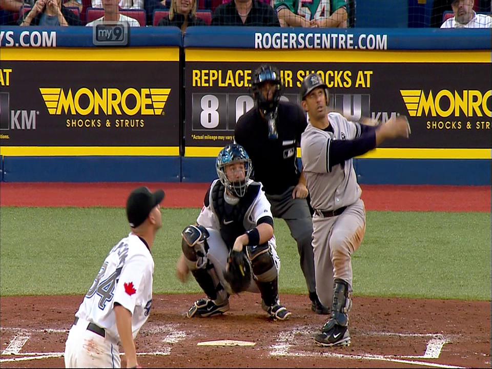 Los Yanquis pusieron fin a la labor del zurdo Marc Rzepczynski (1-2) en la tercera entrada, cuando anotaron cuatro veces y sonaron tres vuelacercas. Teixeira fue el primero en jonronear, al encontrar una pelota con cuenta de un out y ponerla en el segundo piso del graderío, del lado del jardín izquierdo, para su 28vo jonrón.